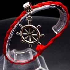 Браслет красная нить оберег от сглаза с кулоном *Штурвал* цвет металла: серебро, размер: универсальный 12-19см