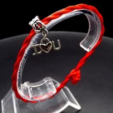Браслет красная нить оберег от сглаза с кулоном *LOVE* цвет металла: серебро, размер: универсальный 12-19см