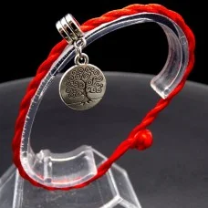 Браслет красная нить оберег от сглаза с кулоном *Дерево жизни* цвет металла: серебро, размер: универсальный 12-19см