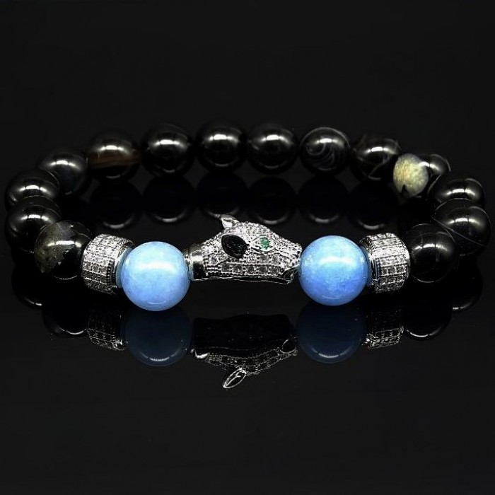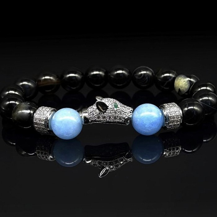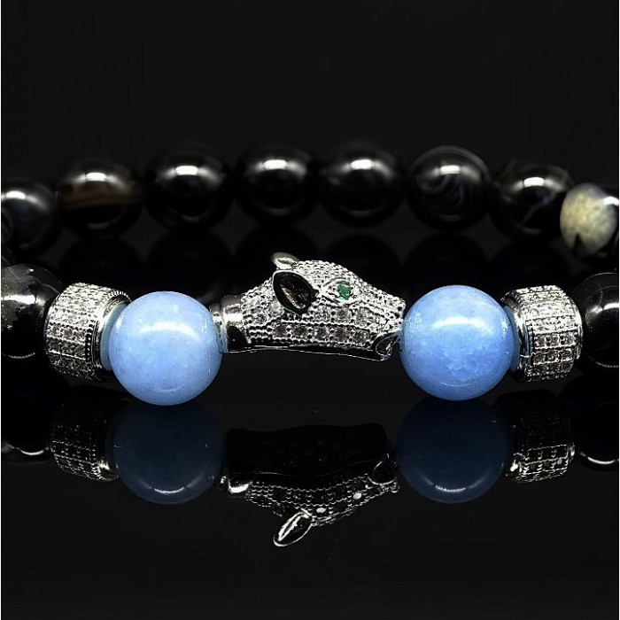 Браслет из натурального камня агат черный и голубой агат