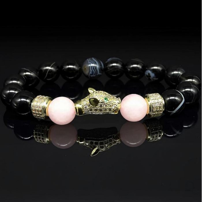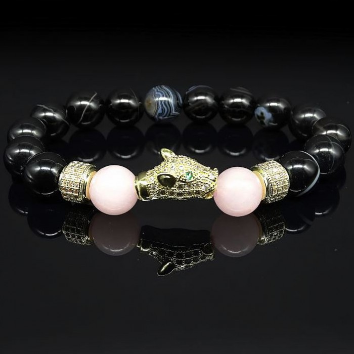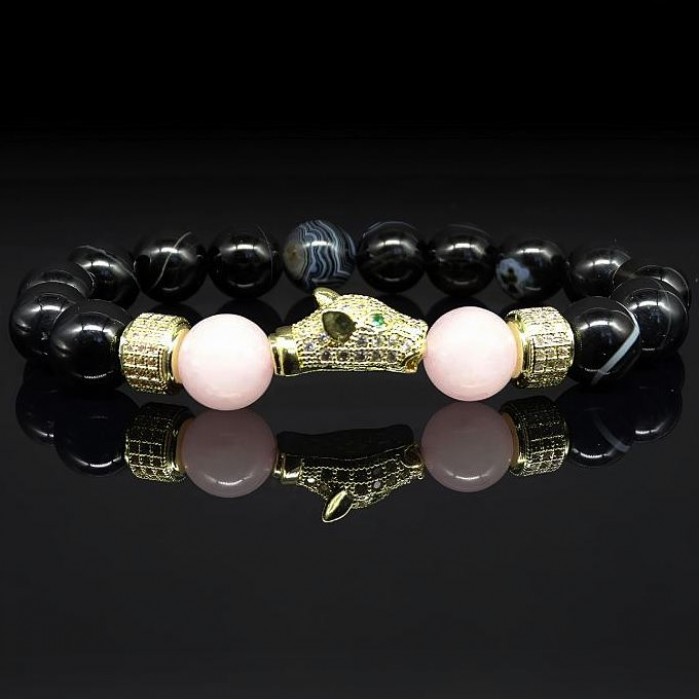 Браслет из натурального камня агат черный и розовый кварц