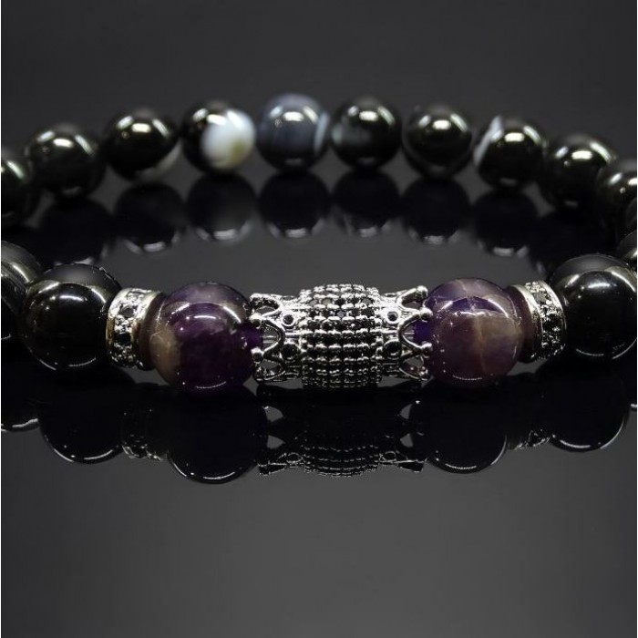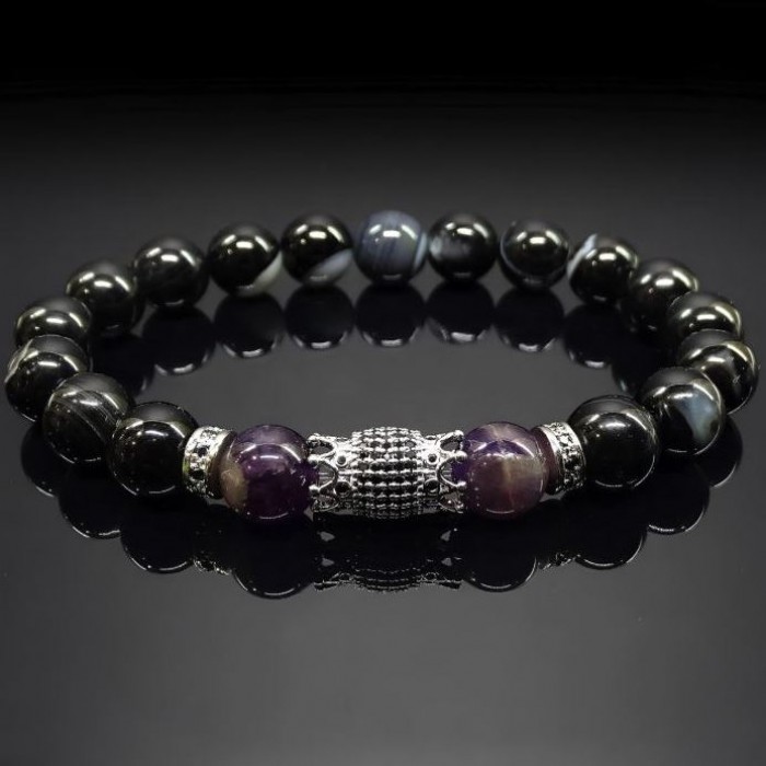 Основные материалы бусин - аметист / черный агат, бусины диаметр -10мм