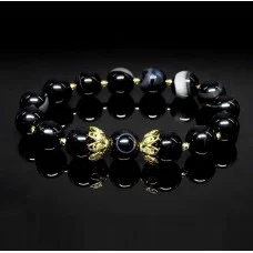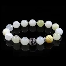 Bracelet with elastic band made of natural stone "Blue agate" metal fittings in silver. Bead diameter: 10mm, girth: 18.5cm+