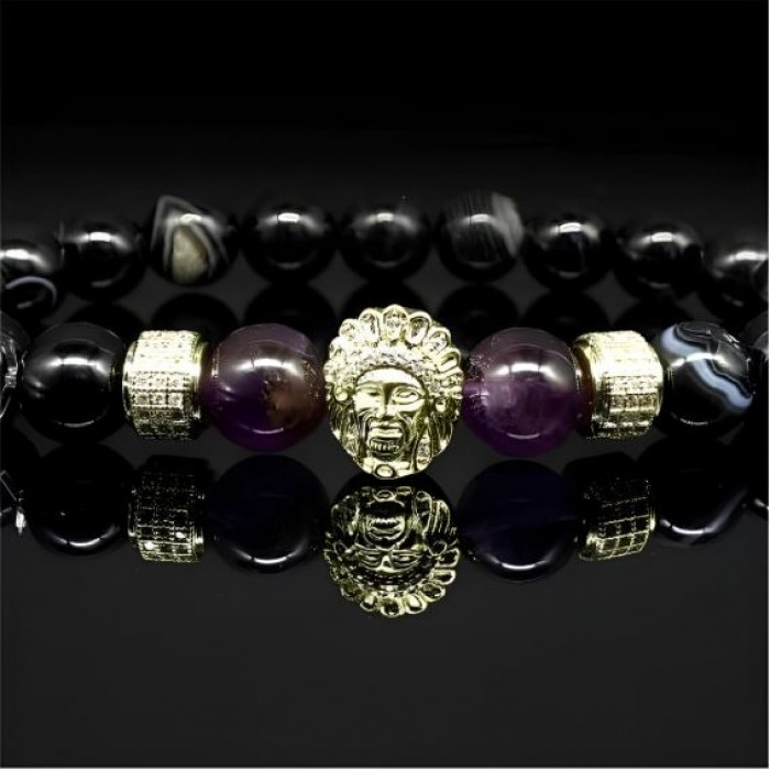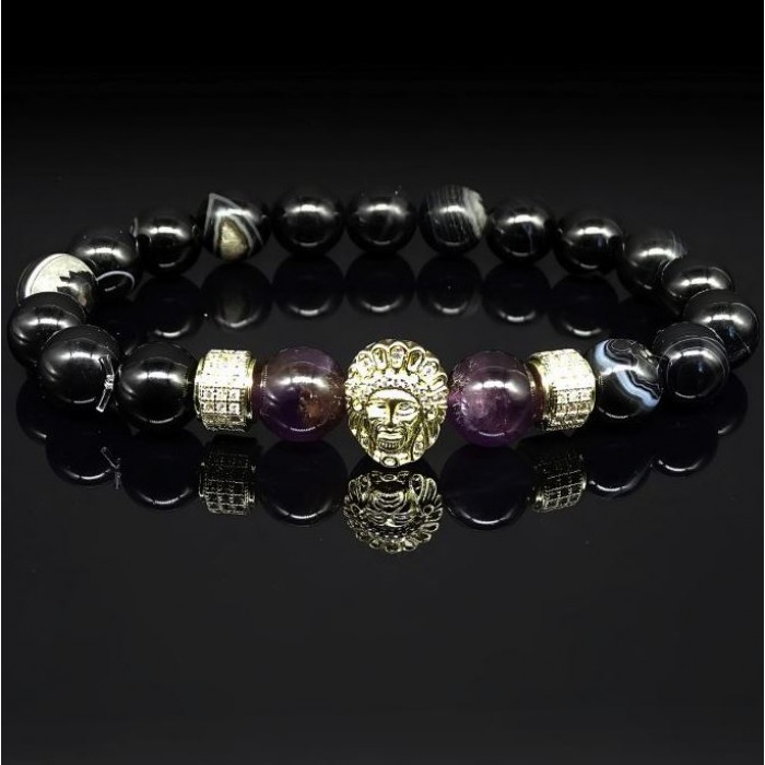 The beads are made primarily of amethyst/black agate, with a diameter of 10 mm.