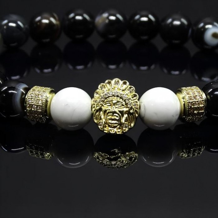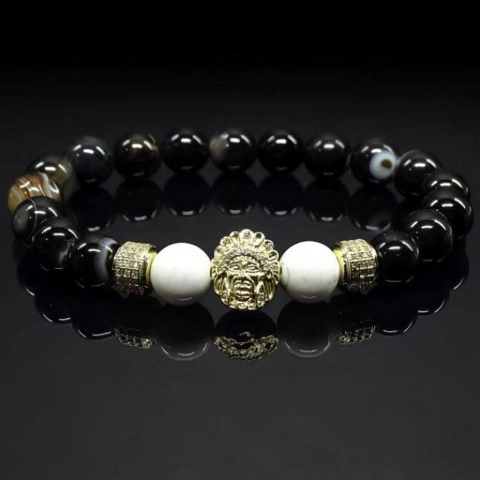 Tags: Men's bracelet made of natural black agate and cacholong stones, GM010198, Mens Bracelets