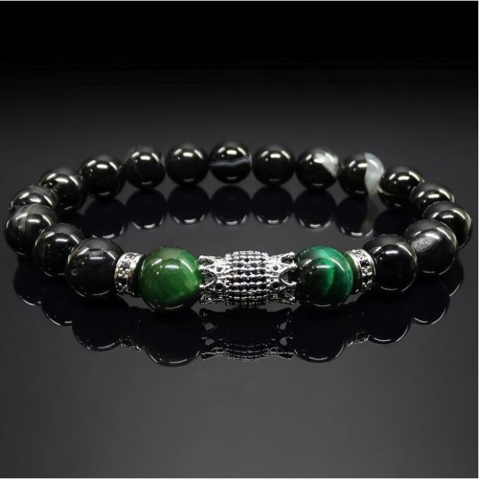 Black glossy agate beads. They give the bracelet a simple and elegant look.