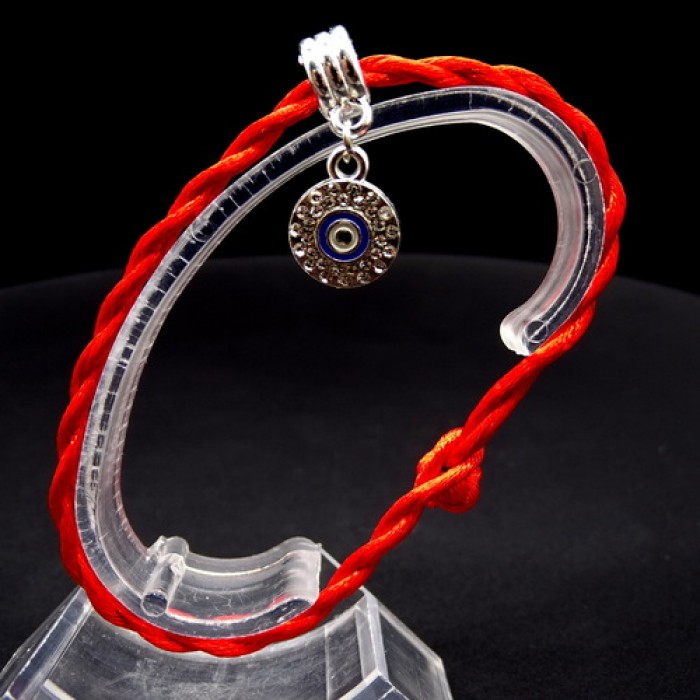 Tags: Bracelet red thread amulet against the evil eye with a pendant with rhinestones *Eye of Fatima* metal color: silver, size: universal 12-19cm, UK0055, Bracelet on a knot of red thread