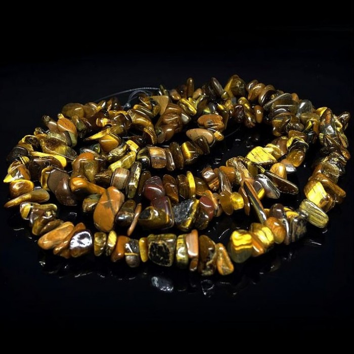 Бусины натуральный камень на леске *Тигровый глаз* крошка, диаметр 7-9мм(+-), длина 80-81см