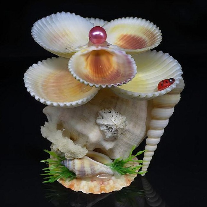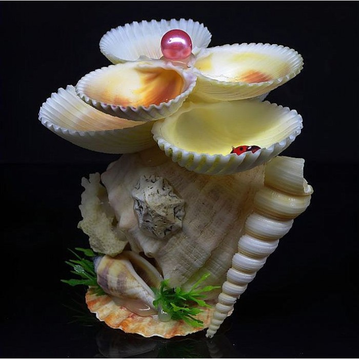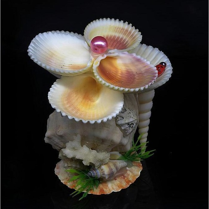 Уникальная композиция из морской ракушки с цветком ручная работа размер 10*9см