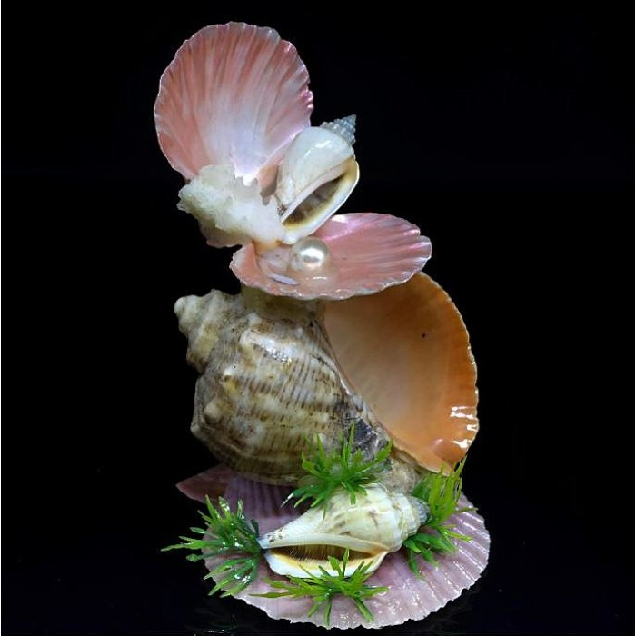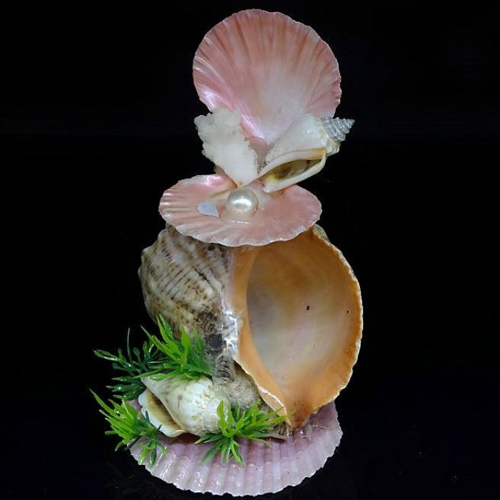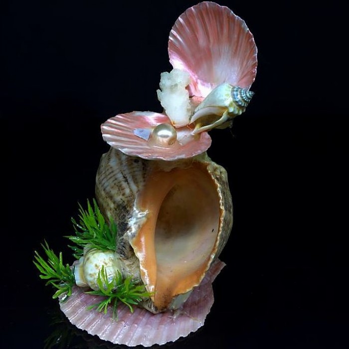 Уникальная композиция из морской ракушки с жемчужиной ручная работа размер 13*7см