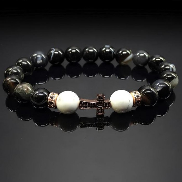 Чорний глянсовий намист з агату. Вони надають браслету строгий і елегантний вигляд.