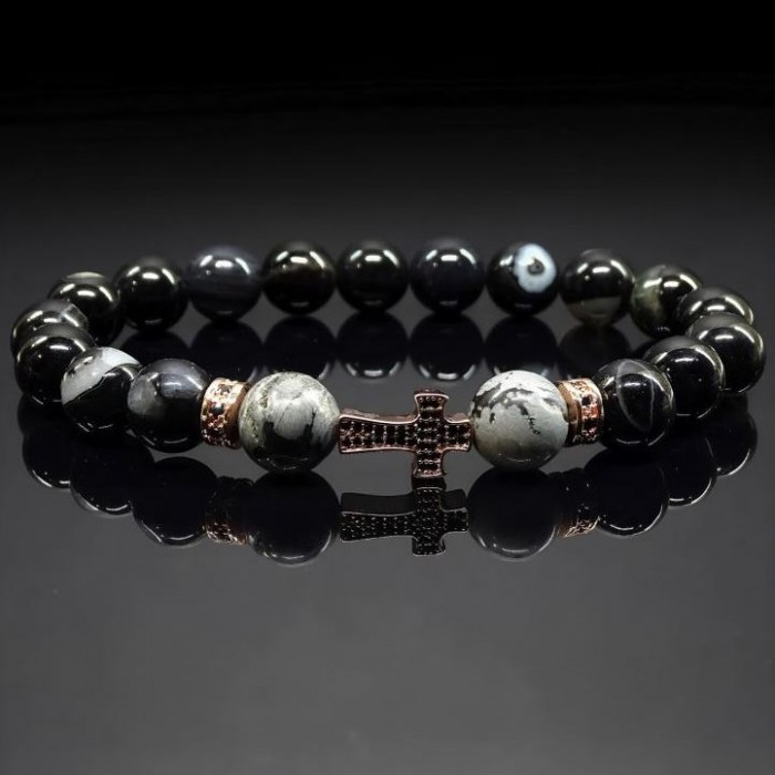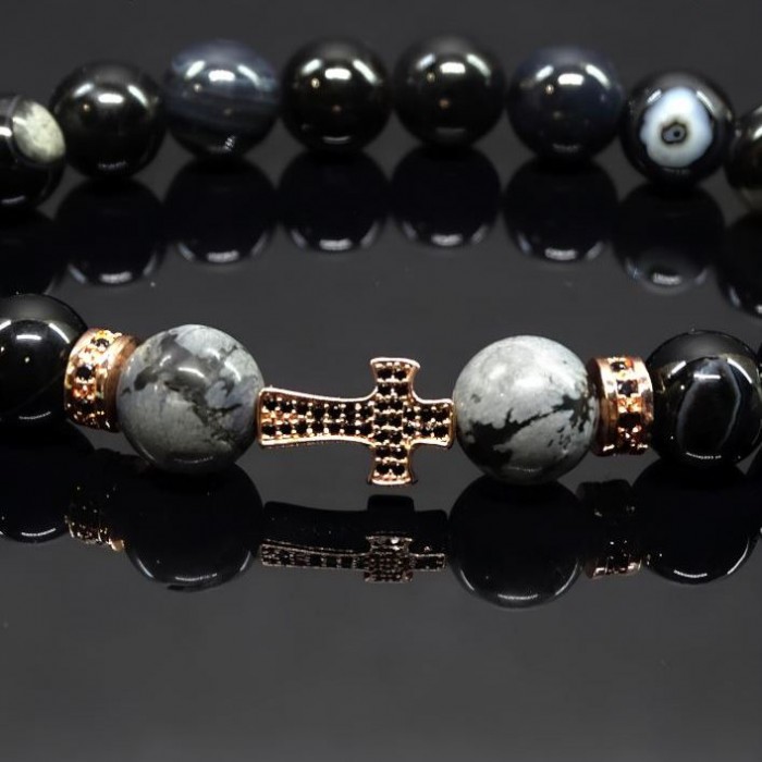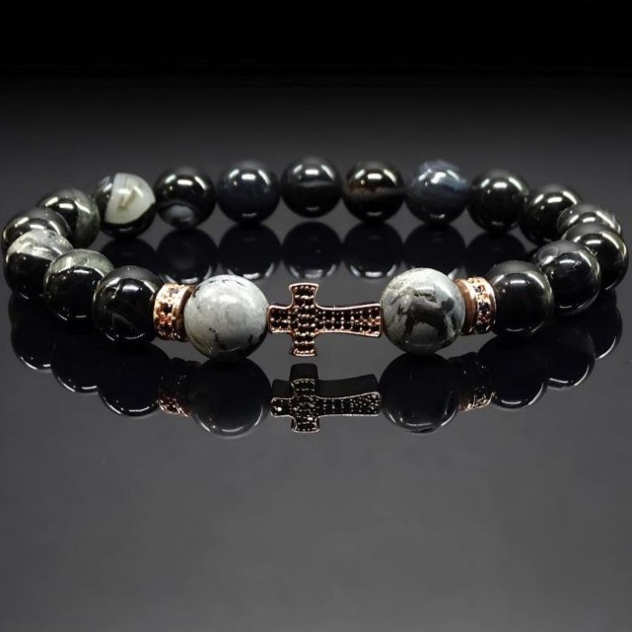 Чорний глянсовий намист з агату. Вони надають браслету строгий і елегантний вигляд.