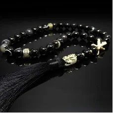 Чотки Золота Корона з натурального каменю Чорний Агат