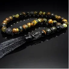 Чотки  Дракон із натурального каменю Тигрове око зелене