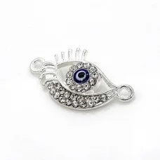 Матеріал: цинковий сплавКолір: срібло з кольоровою емаллюКолір страз: кристалРозмір: 22x10ммРозмір отвору: 1,5 ммТовщина: 2мм..