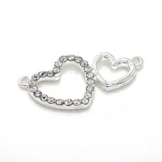 Матеріал: цинковий сплавКолір: сріблоКолір страз: кристалРозмір: 21x16ммРозмір отвору: 1,5 ммТовщина: 3мм..