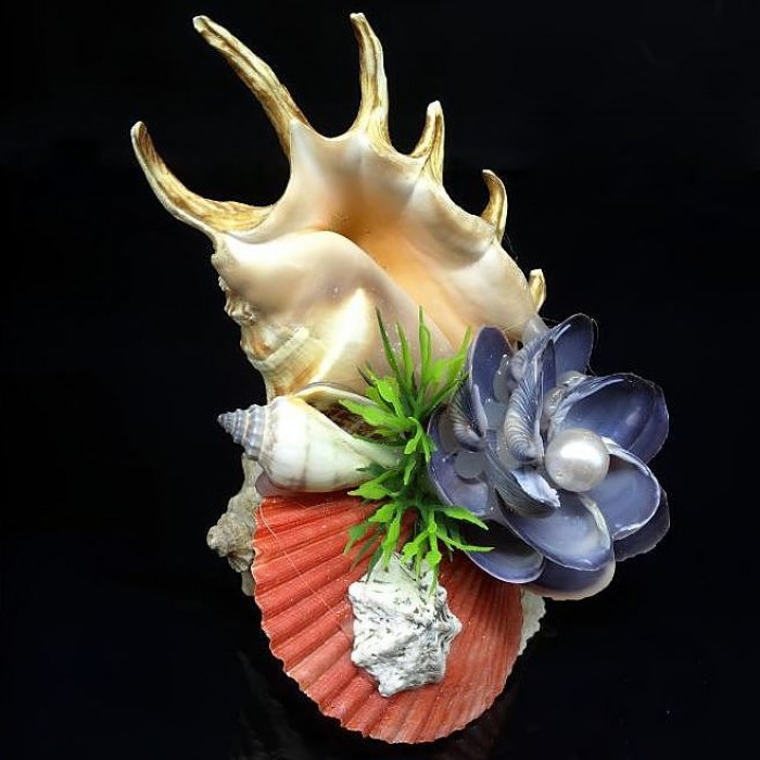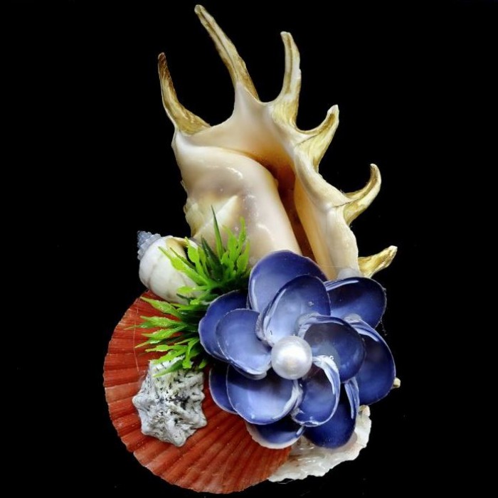 Унікальна композиція з морської мушлі з квіткою ручна робота розмір 12*7см