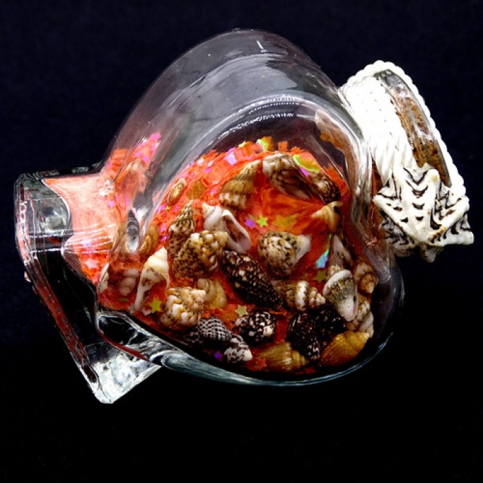 Скляна пляшечка розмір: висота 7 см, ширина 5.7 см, всередині кольоровий пісок з блискітками та натуральна мушлі.