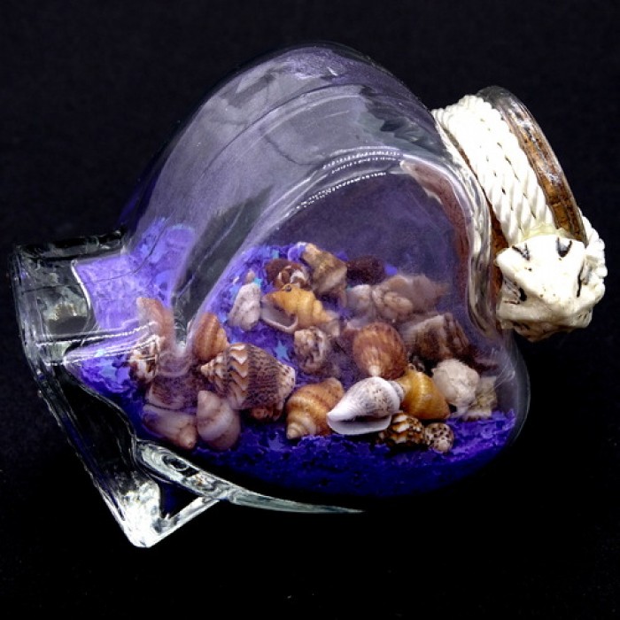 Скляна пляшечка розмір: висота 7 см, ширина 5.7 см, всередині кольоровий пісок з блискітками та натуральна мушлі.