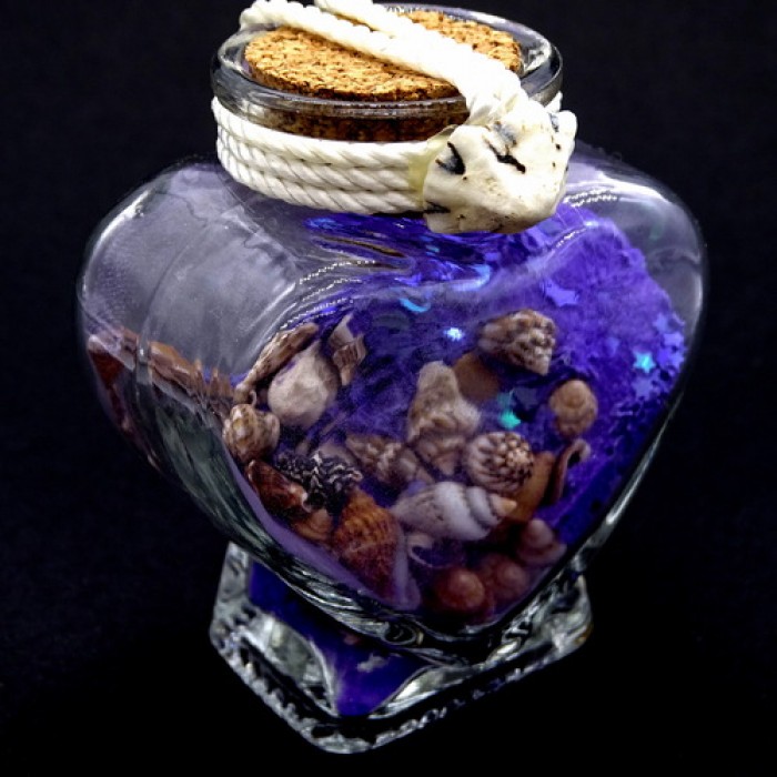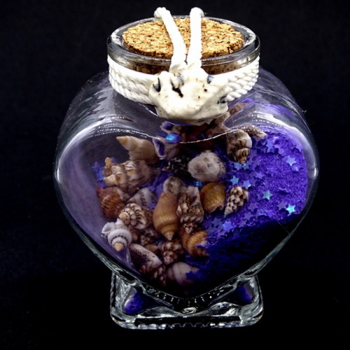 Морський сувенір скляна пляшка у вигляді серця, SU00032, Скляні, колбочки з декором та мушлі