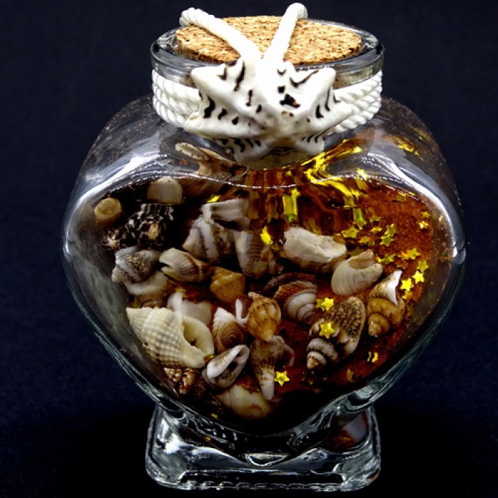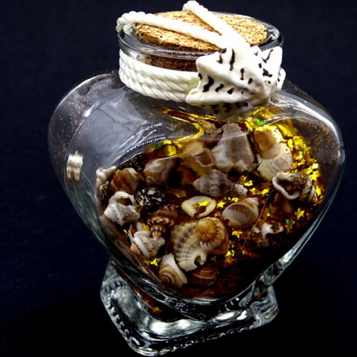 Морський сувенір скляна пляшка у вигляді серця, SU00032, Скляні, колбочки з декором та мушлі